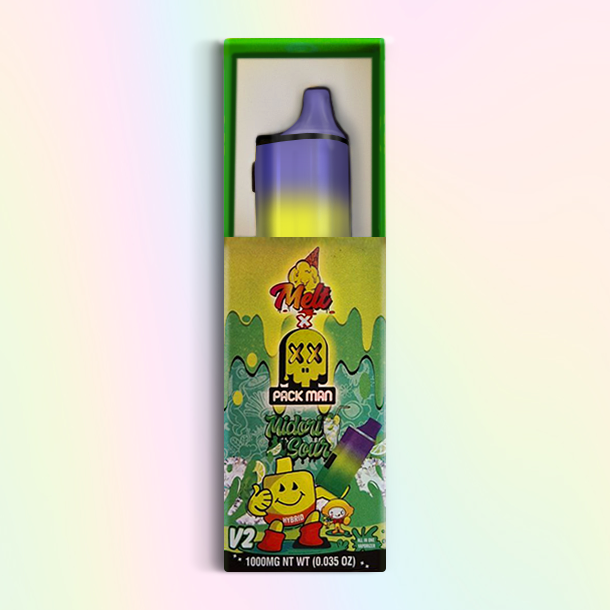 Disposable 1ml vape pen filled with premium Pack Man Midori Sour strain concentrate.